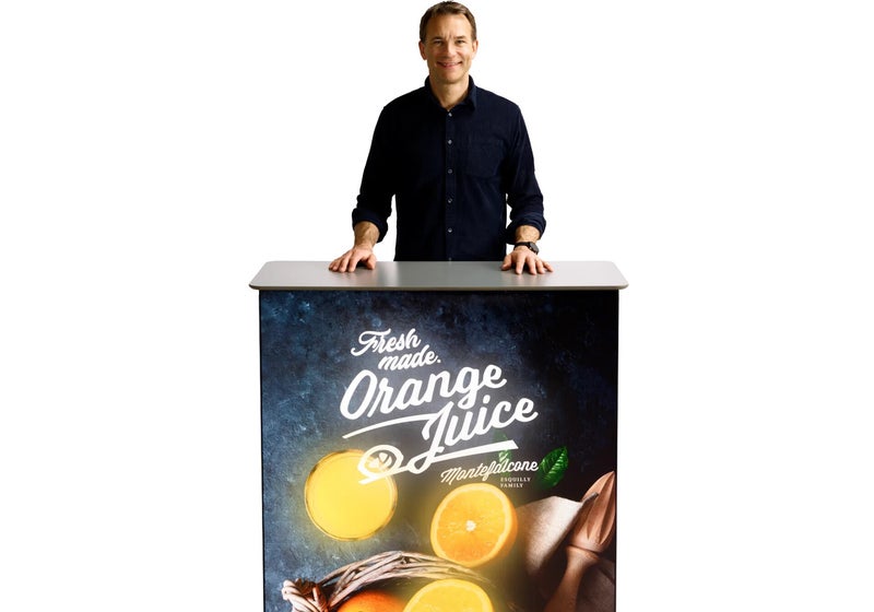 Laat jouw merk schitteren met de Light Frame Counter, een stijlvolle en verlichte beursbalie die direct de aandacht grijpt op beurzen en evenementen. Dankzij het lichte ontwerp en de innovatieve constructie is deze balie niet alleen eenvoudig te vervoeren, maar ook snel en gereedschapsvrij op te zetten. Perfect als eyecatcher voor jouw beursstand, zowel losstaand als gecombineerd met een achterwand.